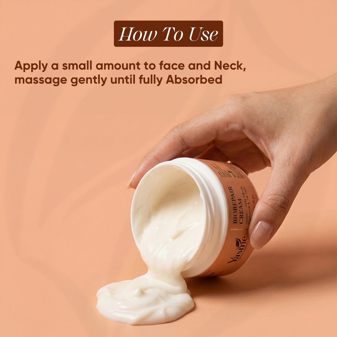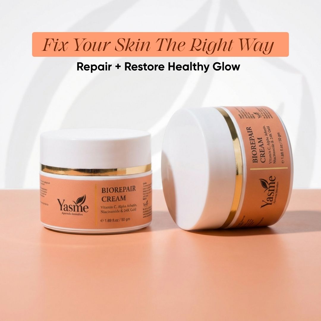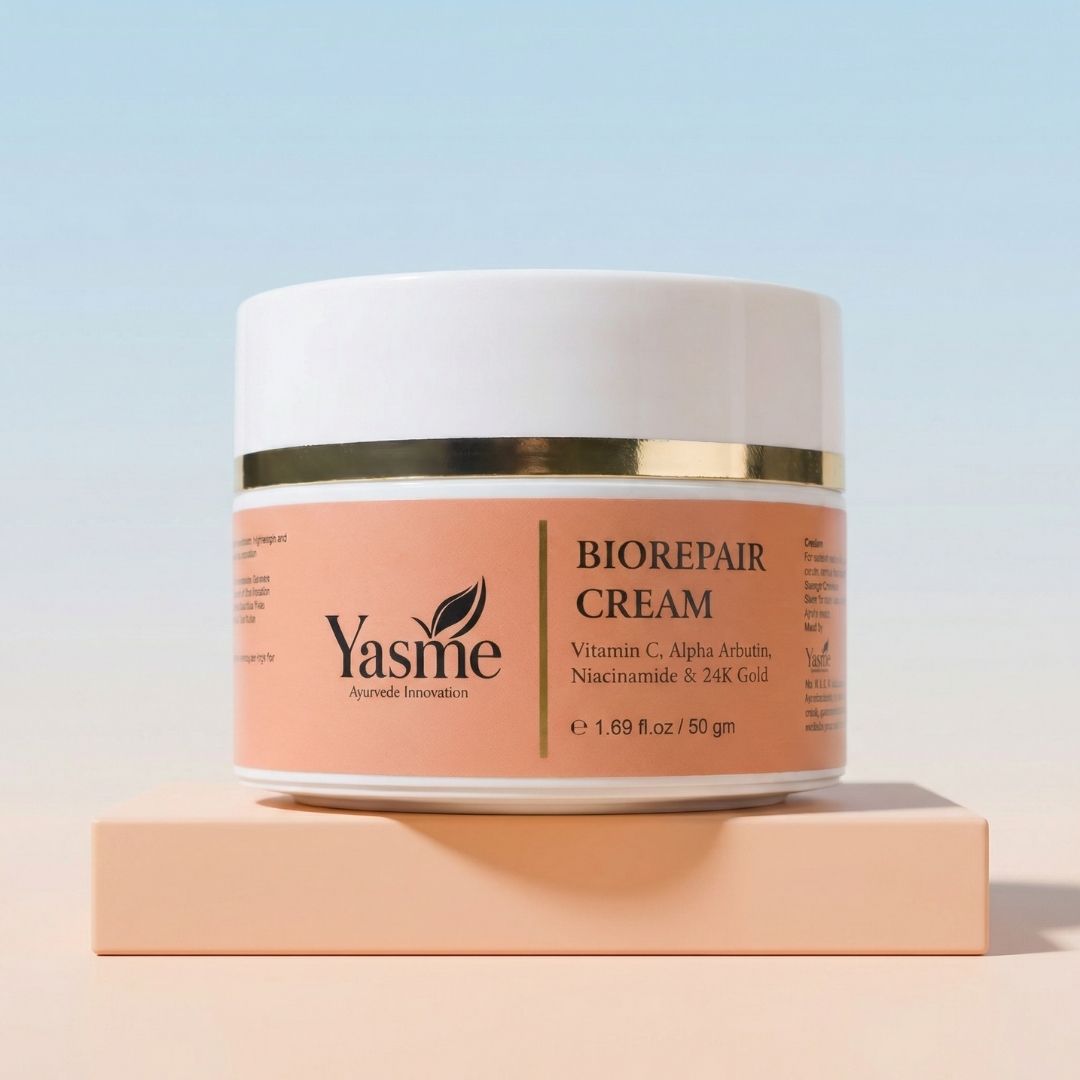 Crafted for the modern professional whose skin bears the marks of stress, screen time, and a demanding pace of life, the Yasme Biorepair Cream is a high-performance treatment moisturiser that does far more than hydrate. Vitamin C and Alpha Arbutin work synergistically to fade hyperpigmentation and even out skin tone, while Niacinamide minimises pores and strengthens the skin’s protective barrier. Threaded through it all is the legendary luxury of 24K Gold — a potent anti-ageing ingredient that boosts elasticity and imparts a warm, lit-from-within radiance. This is not just skincare. It is cellular repair, elevated to an art.